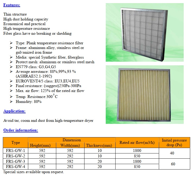 - Bank temperature resistance pre-filter